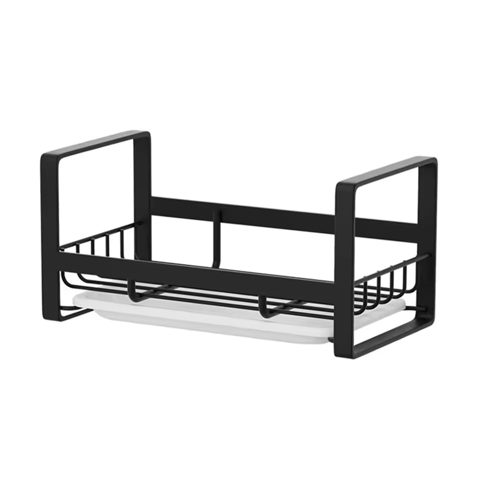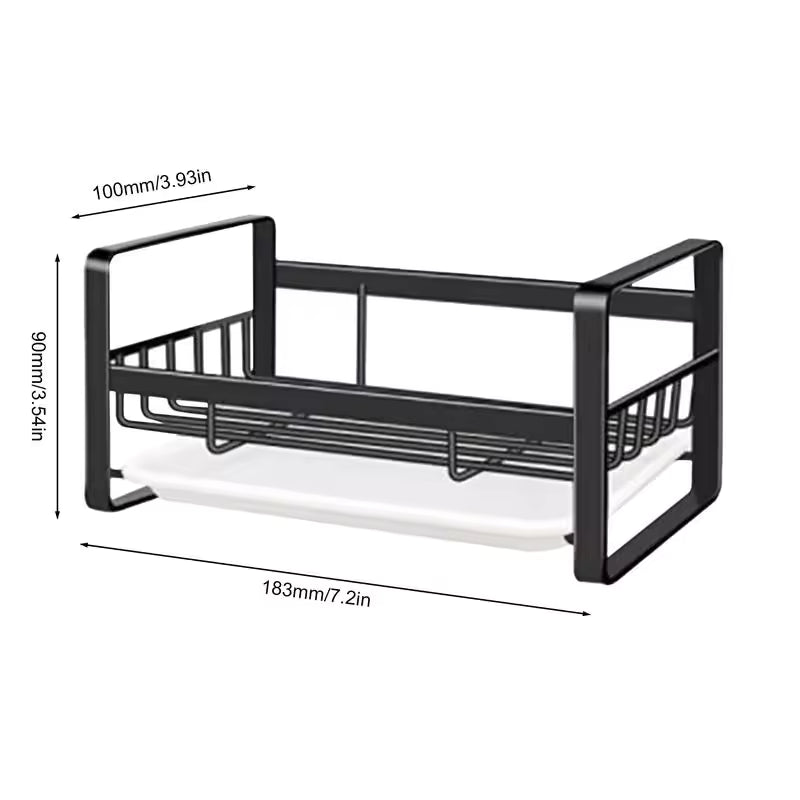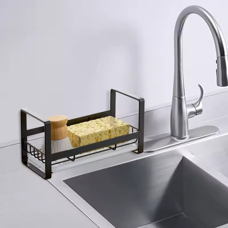 Este práctico soporte mantiene tus esponjas, cepillos y jabón en su lugar, mientras la bandeja de goteo frontal evita que el agua se acumule o ensucie tu mesón.